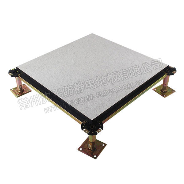 高密度的硫酸钙防静电地板是由原材料加工凝固成硫酸钙晶体,并采用无毒未经漂白的植物纤维作为加固材料经过一次脉冲压制工序制作而成。覆面采用高耐HPL三聚氰胺防静电美亚贴面、PVC、瓷砖、地毯、大理石或天然橡胶等,地板四周为导静电边条,底板采用镀锌钢板。因其环保、防火、高强度、平整等诸多方面优势,已成为架空地板家族中最为广泛使用的材料。在发达国家和地区用量非常大,已超过复合地板用量成为设计师最先考虑的活动地板。